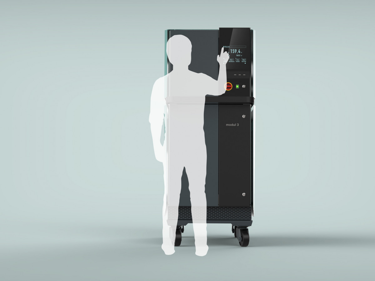 Module 3 combines the advantages of an intelligent housing design with user-friendly operation. Cost-intensive welded joints can be reduced to a minimum thanks to the housing components manufactured using the classic sheet metal bending process and their arrangement. Another important requirement, accessibility of the technical components for maintenance work, is met by quick-release fasteners on all casing parts. The entire system is controlled via a simple digital control unit, which can be coupled and synchronized if several systems are used in parallel.