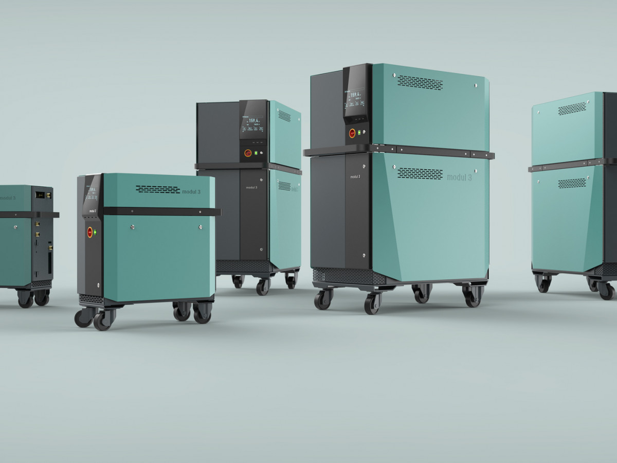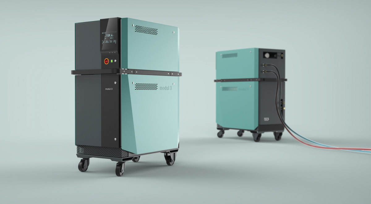 Das Modul 3 vereint die Vorzüge eines intelligenten Gehäuseaufbaus mit einer anwenderfreundlichen Bedienung. Durch die im klassischen Blechbiegeverfahren hergestellten Gehäusebauteile und deren Anordnung können kostenintensive Schweißverbindungen auf ein Minimum reduziert werden. Eine weitere wichtige Anforderung, die Zugänglichkeit der technischen Komponenten bei anfallenden Wartungsarbeiten, wird durch Schnellverschlüsse an allen Verkleidungsteilen erfüllt. Die Steuerung des gesamten Systems verläuft über eine schlicht gehaltene, digitale Steuereinheit, die bei einem parallelen Einsatz von mehreren Anlagen gekoppelt und synchronisiert werden kann.