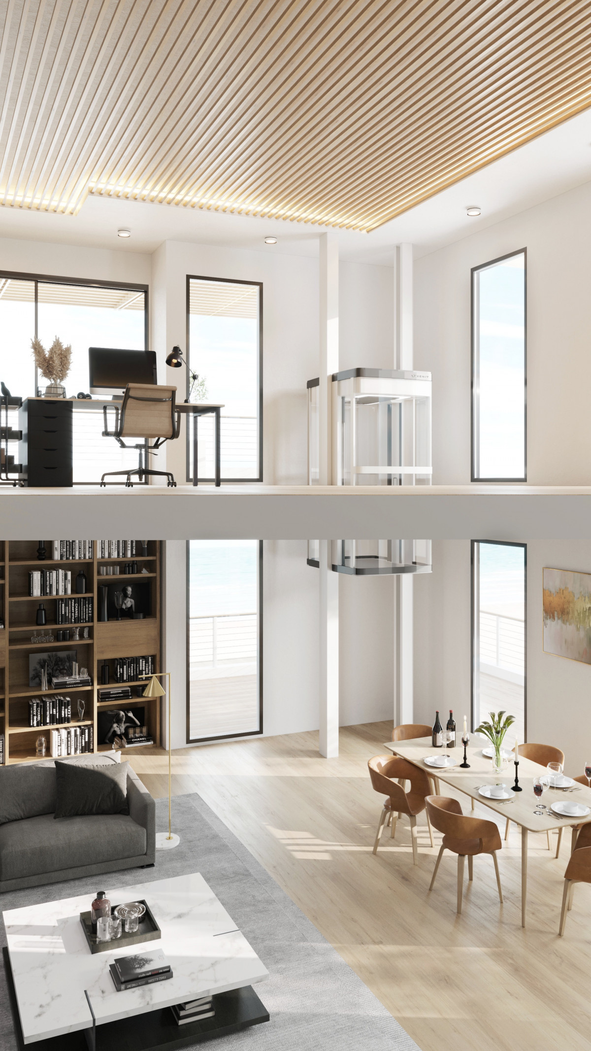 Mit radikaler gestalterischer Klarheit überzeugt »Venit Max / Venit Core« durch sein ikonisches Säulendesign und eine flächenbündige Glastür, die eine harmonische Integration ins Wohnumfeld ermöglicht. Hochwertige Materialien und präzise Technik schaffen einen wertbeständigen, komfortablen Homelift, der Barrierefreiheit und Ästhetik vereint. Die konsequente Reduktion auf das Wesentliche setzt in der Gestaltung und Umsetzung ein besonders beeindruckendes Zeichen für exzellente Produktqualität.